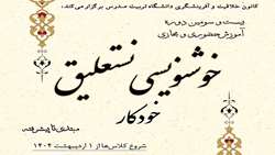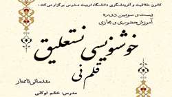 خوشنویسی حائز رتبه شایسته تقدیر شد. عطیه جنابی دانشجوی کارشناسی ارشد و دبیر کانون هنرهای تجسمی دانشگاه تربیت مدرس در سومین جشنواره پروین اعتصامی در رشته خوشنویسی حائز رتبه شایسته تقدیر شد.لازم به ذکر است که خانم جنابی مدرس دورههای آموزش خوشنویسی با...