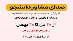 صدای مشاور دانشجو طرح کشوری صدای مشاور دانشجو «صدای مشاور دانشجو» بهمنظور ارائۀ مشاورۀ تلفنی در ایام امتحانات از ۲۰ دی ماه تا ۲۰ بهمن ماه امسال همراه دانشجویان است. طرح کشوری صدای مشاور دانشجوبا فرارسیدن ایام امتحانات و با هدف ارتقا سلامت روانی...