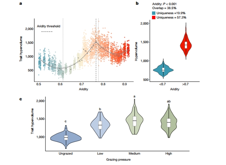 به طور کلی، این مطالعه شامل بیش از ۱۳۰۰۰۰ اندازه گیری صفات گیاهی فردی بود. یک فرضیه کلیدی در آغاز مطالعه این بود که خشکی از طریق انتخاب، تنوع گیاهان را کاهش می‌ دهد و تنها گونه‌ هایی را باقی می‌ گذارد که می‌ توانند کمبود شدید آب و تنش گرمایی را تحمل کنند. با این حال، نتایج این تحقیق نشان داد که در خشک‌ ترین مراتع زمین، جایی که گیاهان طیف گسترده‌ ای از استراتژی‌ های سازگاری فردی را نشان می‌ دهند، عکس این قضیه صادق است. به عنوان مثال، برخی از گیاهان سطوح بالایی از کلسیم ایجاد کرده‌اندو دیواره‌های سلولی را به عنوان محافظتی در برابر خشک شدن تقویت می‌کنند. برخی دیگر حاوی غلظت بالایی از نمک هستند که تعرق را کاهش می‌دهند. اگرچه گونه‌ های کمتری در مقیاس محلی نسبت به سایر مناطق کره زمین (در مناطق معتدل یا گرمسیری) مشاهده می‌ شوند، اما گیاهان در مناطق خشک تنوع کارکردی فوق‌ العاده‌ ای از اشکال، اندازه‌ ها و کارکرد را نشان می‌ دهند، که دو برابر مناطق آب و هوایی معتدل‌ تر است. این افزایش در تنوع صفات به طور ناگهانی در نقطه‌ایرخ می‌دهد که حجم بارندگی به زیر آستانه سالانه ۴۰۰ میلی متر کاهش می‌یابد. این نقطه همچنین آستانه کاهش شدید پوشش گیاهی و ظهور مناطق وسیعی از خاک لخت است. برای توضیح این پدیده، نویسندگان این مطالعه پیشنهاد می‌ کنند که از دست دادن پوشش گیاهی منجر به « سندرم تنهایی گیاه» می‌ شود، جایی که افزایش انزوا و کاهش رقابت برای منابع، درجات بالایی از منحصربه‌ فرد بودن صفت و تنوع کارکردی را ایجاد می‌ کند که در سطح جهانی استثنایی است. این تنوع تطبیقی ​​می‌ تواند به همان اندازه منعکس‌ کننده تاریخ‌ های تکاملی پیچیده باشد که قدمت آن به اشغال اولیه زیستگاه‌ های زمین توسط گیاهان در بیش از ۵۰۰ میلیون سال پیش بازمی‌ گردد، زمانی که این زیستگاه‌ ها شرایط سختی را برای موجودات زنده ایجاد کردند. این مطالعه اهمیت مناطق خشک را به عنوان یک مخزن جهانی تنوع کارکردی در گیاهان نشان می‌ دهد. این یک دریچه تازه برای مشاهده ساختار گیاهان، سازگاری آن با زیستگاه‌های دارای تنش شدید، استقرار تاریخی گیاهان در محیط‌های خشکی، و ظرفیت گیاهان برای پاسخ به تغییرات جهانی فعلی را فراهم می‌کند.