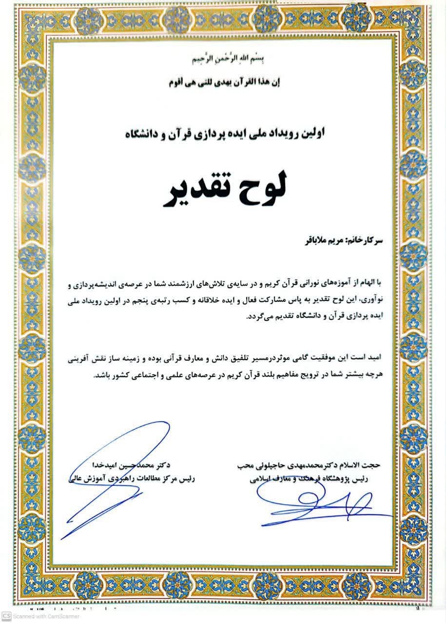 در این رویداد ملی، کامران کریمی کارشناس فرهنگی و اجتماعی دانشگاه رتبه دوم و مریم ملاباقر دانشجوی مقطع دکتری رشته مدیریت فناوری اطلاعات و کسب و کار هوشمند رتبه پنجم را به دست آوردند.طبق اعلام کمیته داوری ۸۵ اثر به مرحله داوری نهایی راه یافتند.مرحله نهایی این رویداد با رویکرد نخبگانی و به ابتکار مرکز مطالعات راهبردی آموزش عالی و با حمایت پژوهشگاه فرهنگ و معارف اسلامی و مشارکت اداره کل فرهنگی و اجتماعی نهاد نمایندگی مقام معظم رهبری در دانشگاه‌ها در محورهای روش‌های نوین ترویج قرآن در میان دانشجویان، نقش فناوری‌های روز در توسعه فرهنگ قرآنی، قرآن و سبک زندگی دانشجویی، راهکارهای کاربردی برای انس بیشتر با قرآن، نقش قرآن در توسعه فناوری‌های روز و تجربه‌نگاری طرح‌ها و برنامه‌های موفق و اثرگذار قرآنی در روزهای پنجشنبه و جمعه ۲۸ و ۲۹ فروردین ۱۴۰۴ در دانشگاه شاهد برگزار و از منتخبین تقدیر به عمل آمد.