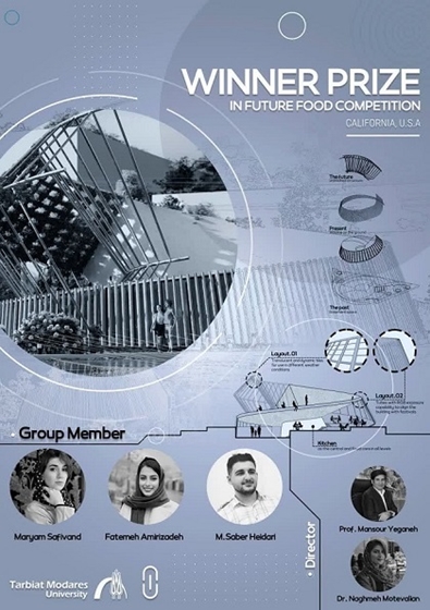 تیم دانشجویی دانشکده هنر و معماری دانشگاه تربیت مدرس متشکل از مریم صفی وند، فاطمه امیری زاده و محمدصابر حیدری (اعضای گروه تیم طراحی)، دکتر منصور یگانه (استاد هدایت تیم طراحی) و دکتر نغمه متولیان (دستیار هدایت تیم طراحی) رتبه اول مسابقه جهانی طراحی معماری آینده غذا در کالیفرنیا آمریکا را کسب کرد.