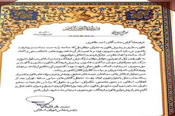 بر اساس نظر هیأت داوران نخستین دوره آیین جایزه ملی قانون، رساله دکتر احمد طاهری دانش آموخته جغرافیای سیاسی دانشگاه تربیت مدرس با عنوان "تبیین ابعاد زیست محیطی گفتمانهای سیاسی مسلط، تهران بعد از انقلاب اسلامی در محور تخصصی حکمرانی، سیاسی و حقوقی حائز رتبه برتر شد. در نخستین دوره آیین جایزه ملی قانون بیش از یک هزار و ۱۰۰ اثر در سه بخش پژوهش، آموزش و نظارت از سوی مجلس شورای اسلامی دریافت و مورد ارزیابی قرار گرفت. گفتنی است آیین اعطای نخستین جایزه ملی قانون ۲۳ اسفندماه با حضور دکتر قالیباف در تالار مدرس مجلس شورای اسلامی برگزار شد.