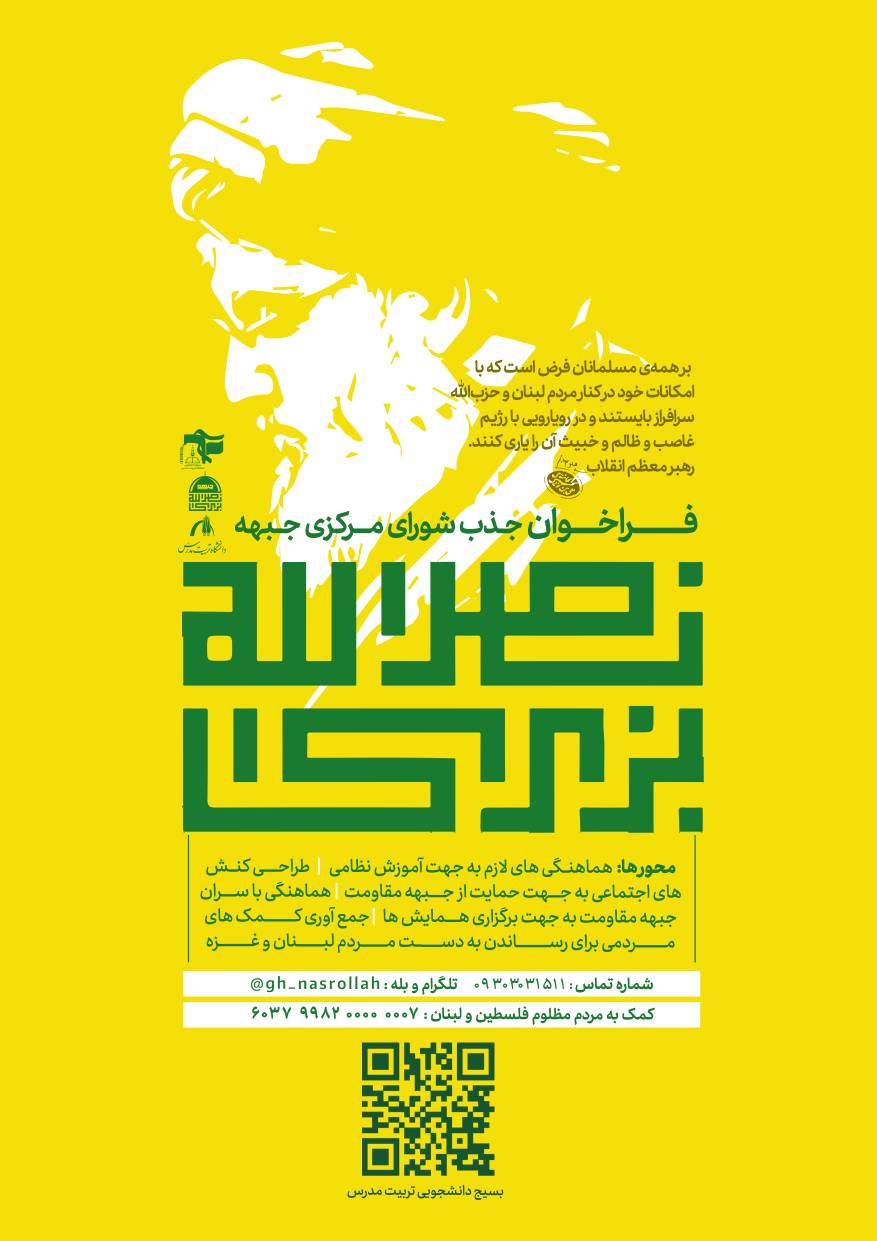 قرارگاه سید حسن نصرالله با هدف حمایت از جبهه مقاومت و تببین فعالیت های فرهنگی و اجتماعی 23 مهر ماه در دانشگاه افتتاح می شود.