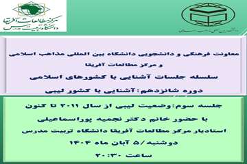 در راستای برگزاری سلسله کارگاه‌های تخصصی آشنایی با کشور لیبی، جلساتی با ارائه اعضای هیأت علمی مرکز مطالعات آفریقا دانشگاه تربیت مدرس برگزار شد.
