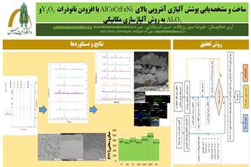 این پژوهش با هدف بهبود خواص مکانیکی و مقاومت در برابر تخریب در دماهای بالا، به ساخت و مشخصه‌یابی پوشش‌های نانوکامپوزیتی آلیاژ آنتروپی بالای AlCoCrFeNi تقویت‌شده با نانوذرات اکسید ایتریم (Y2O3) و اکسید آلومینیوم (Al2O3) پرداخته است. بدین منظور، ابتدا پودرهای نانوکریستالی با استفاده از روش آلیاژسازی مکانیکی (MA) سنتز شدند و پارامترهای فرآیند شامل زمان، سرعت و نسبت گلوله به پودر بهینه‌سازی گردید. سپس، پودرهای بهینه به همراه درصدهای حجمی متفاوت (۱، ۲ و ۳ درصد) از نانوذرات اکسیدی (به صورت مجزا و همزمان) با بهره‌گیری از تکنیک تف‌جوشی پلاسمای جرقه‌ای (SPS) به عنوان پوشش بر روی زیرلایه هستلوی X اعمال شدند. بررسی‌های فازی و ریزساختاری با استفاده از پراش پرتو ایکس (XRD) و میکروسکوپ الکترونی روبشی (FESEM)  نشان داد که شرایط بهینه آلیاژسازی (۳۰ ساعت، ۳۰۰ دور بر دقیقه) منجر به تشکیل محلول جامد نانوساختار با فاز غالب BCC می‌شود. پوشش‌های تولید شده توسط فرآیند SPS دارای ساختاری متراکم، پیوسته و با حداقل تخلخل بودند. آنالیزهای دقیق عنصری با استفاده از تکنیک‌هایEDS، نقشه‌برداری نقطه‌ای و اسکن خطی انجام شد. بررسی پروفیل‌های غلظت و شدت عناصر در سطح مقطع پوشش‌ها، وجود نوسانات دوره‌ای در توزیع عناصر را نشان داد که بیانگر وقوع تجزیه اسپینودال و جدایش فازی به نواحی غنی از کرومـ آهن و آلومینیومـ نیکل در طی فرآیند تف‌جوشی است.