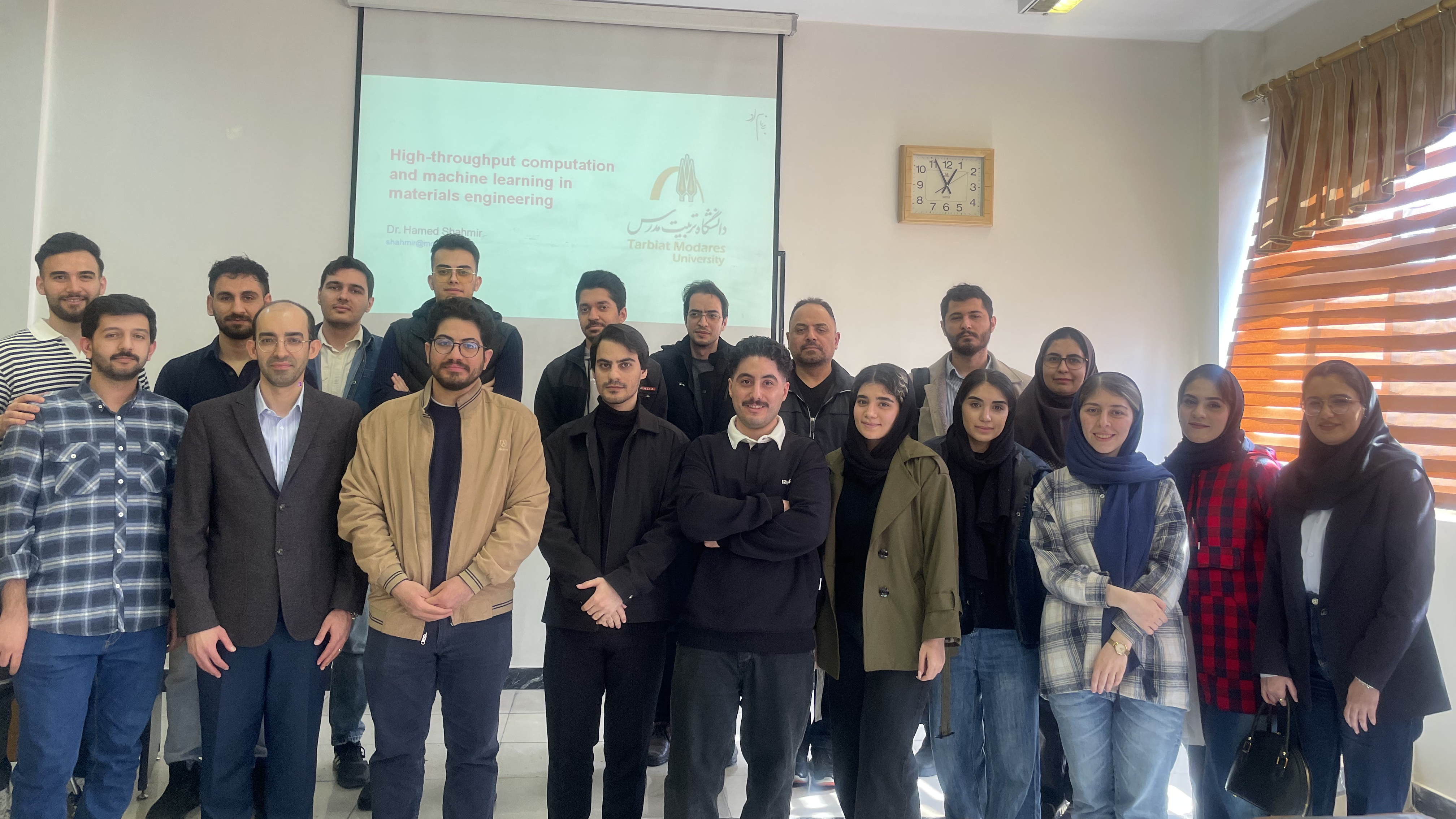 در این کارگاه آموزشی که با حضور حدود 40 نفر از دانشجویان دانشگاه تربیت مدرس و سایر دانشگاه های تراز اول تهران برگزار شد، دکتر حامد شاه میر عضو هیأت علمی دانشکده مهندسی معدن و مواد، توضیحات دقیق و کاملی در حوزه محاسباتی مهندسی مواد، تحلیل داده و کاربردهای یادگیری ماشین ارائه نمود.