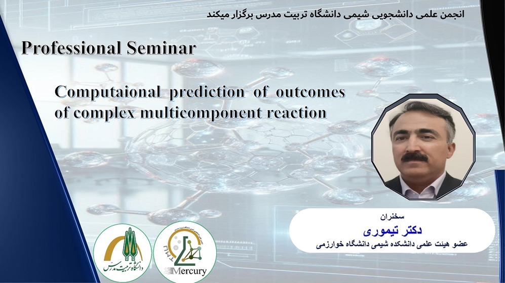 سخنرانی تخصصی دکتر محمدباقر تیموری، استاد برجسته شیمی آلی از دانشگاه خوارزمی، با عنوان Computational prediction of outcomes of complex multicomponent reaction، روز دوشنبه ۵ خرداد ۱۴۰۴ از ساعت ۱۴ الی ۱۶ در سالن آمفی‌تئاتر دانشکده علوم دانشگاه تربیت مدرس برگزار خواهد شد.دکتر تیموری از پژوهشگران فعال در حوزه مدل‌سازی و شبیه‌سازی واکنش‌های چندجزئی پیچیده به شمار می‌رود و اخیراً مقاله‌ای در مجله معتبر Journal of Chemical Sciences (JCS) منتشر کرده است که مورد توجه جامعه علمی قرار گرفته است.این سخنرانی به بررسی روش‌های محاسباتی در پیش‌بینی مسیرهای واکنشی، ارزیابی پایداری ترکیبات واسطه، و بهینه‌سازی فرآیند سنتز می‌پردازد. هدف این برنامه فراهم آوردن بستری علمی برای تبادل نظر میان پژوهشگران و دانشجویان علاقه‌مند به شیمی محاسباتی و واکنش‌های چندجزئی است.