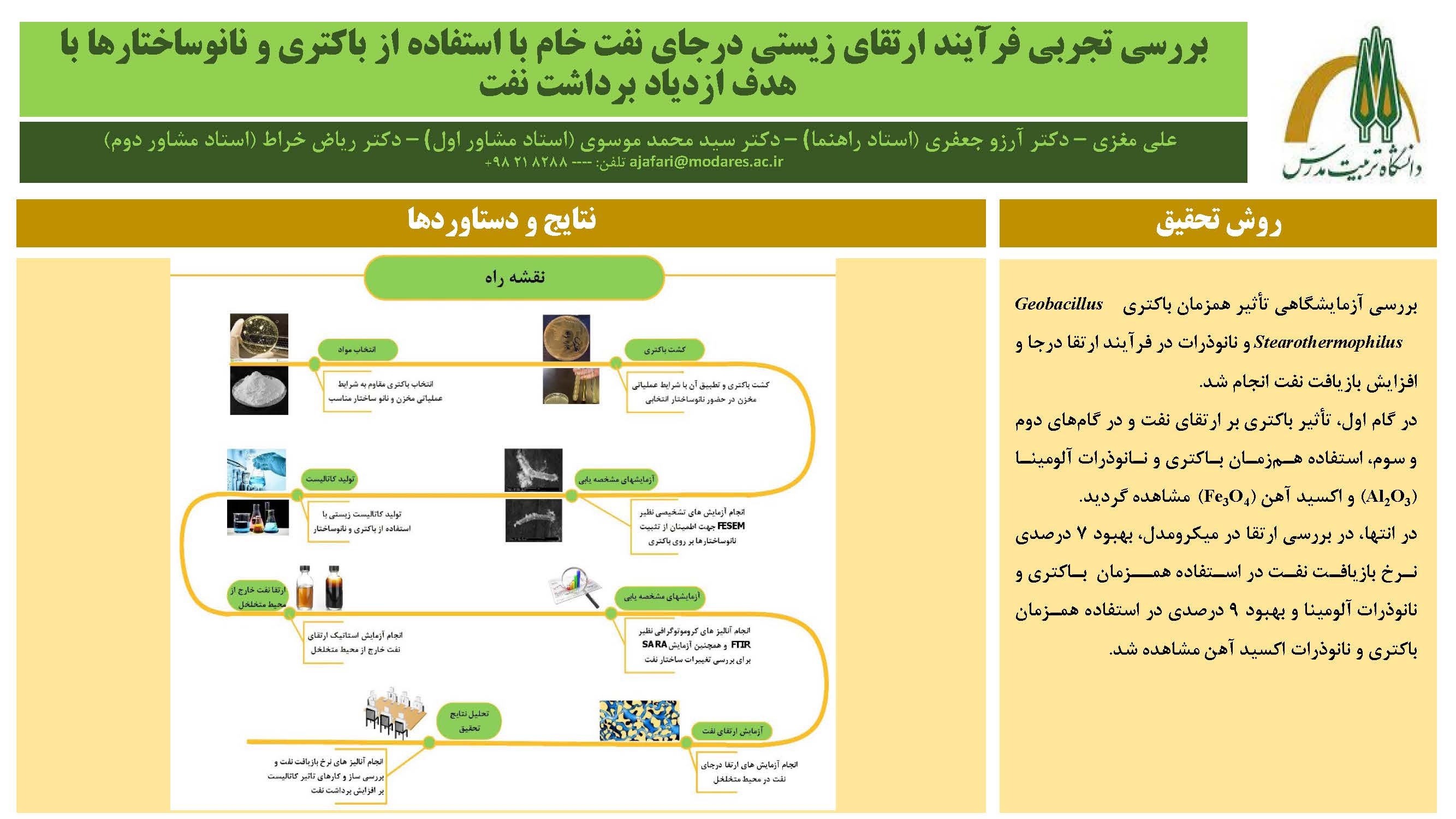 عنوان رساله: بررسی تجربی فرآیند ارتقای زیستی درجای نفت خام با استفاده از باکتری و نانوساختارها با هدف ازدیاد برداشت نفت