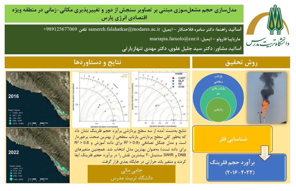 جلسه دفاع پرویز جوکار با عنوان «مدل سازی حجم مشعل سوزی مبتنی بر تصاویر سنجش از دور و تغییرپذیری مکانی-زمانی در منطقه ویژه اقتصادی انرژی پارس» 26 فروردین 1405 برگزار می شود.