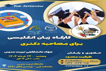 کارگاه زبان انگلیسی برای مصاحبه دکتری 24 خرداد 1403 در دانشکده فنی و مهندسی برگزار می شود.