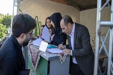 رییس دانشگاه به همراه معاون آموزشی و جمعی از مدیران و مسئولان دانشگاه با حضور در غرفه اسقبال از دانشجویان نوورود با دانشجویان ورودی جدید دیدار کردند.