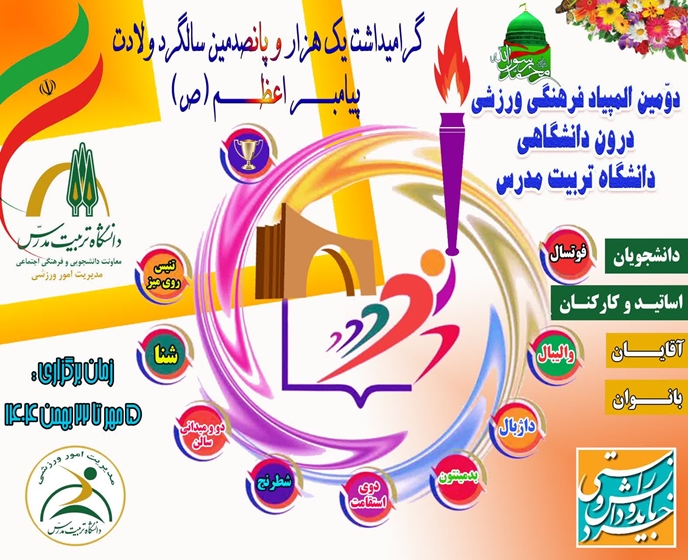 مدیریت امور ورزشی به مناسبت گرامیداشت یک هزار و پانصدمین سالگرد ولادت پیامبر اعظم (صلی الله علیه و آله)، دومین المپیاد فرهنگی ورزشی دانشگاه تربیت مدرس را برگزار می‌کند.