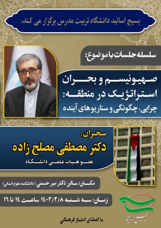 برگزاری سلسله جلسات با موضوع «صهیونیسم و بحران استراتژیک در منطقه: چرایی، چگونگی و سناریوهای آینده»