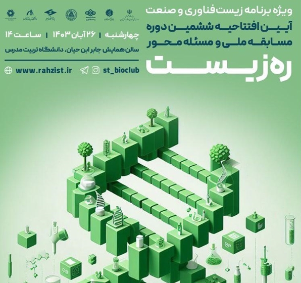 ویژه‌ برنامه زیست‌ فناوری و صنعت و آیین افتتاحیه ششمین دوره مسابقه ملی و مسئله‌ محور ره زیست با حضور دکتر قانعی، دبیر ستاد توسعه زیست‌ فناوری معاونت علمی، فناوری و اقتصاد دانش‌ بنیان ریاست جمهوری و سخنرانی اساتید برجسته و مدیران صنعت حوزه زیست‌ فناوری برگزار می‌شود. این رویداد با حضور دانشجویان نخبه زیست فناور ساعت ۱۴ روز چهارشنبه ۲۳ آبان ماه جاری در سالن جابربن حیان دانشگاه تربیت مدرس برگزار می‌شود.