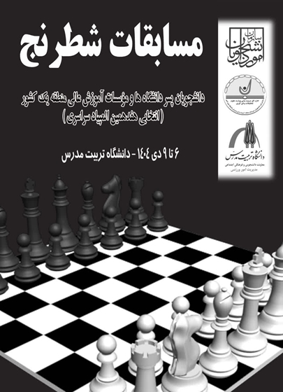 مسابقات قهرمانی شطرنج دانشجویان پسر دانشگاه ها و مؤسسات آموزش عالی منطقه یک کشور، ۶ تا ۹ دی ماه در دانشگاه تربیت مدرس برگزار می شود.