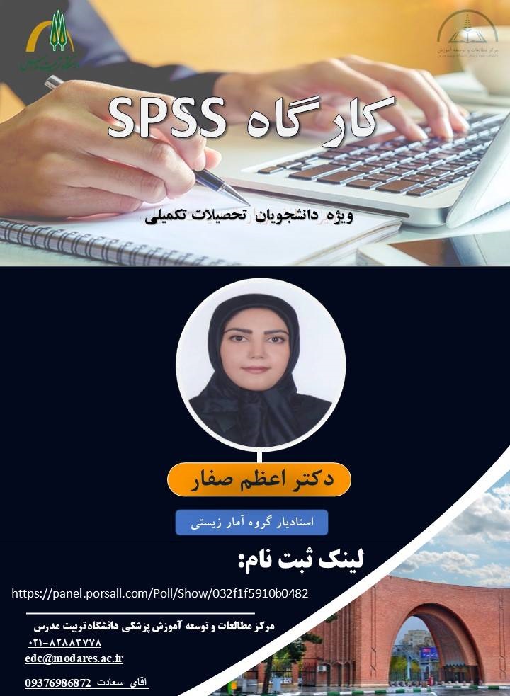 مرکز مطالعات و توسعه آموزش دانشکده علوم پزشکی دانشگاه وبینار تجزیه و تحلیل آماری با استفاده از SPSS را به مدرسی دکتر اعظم صفار روز چهارشنبه ۲۳ آبان ماه جاری برگزار میکند. علاقمندان میتوانند برای کسب اطلاعات بیشتر و ثبت نام به لینک زیر مراجعه کنند. https://med.modares.ac.ir/~regedc