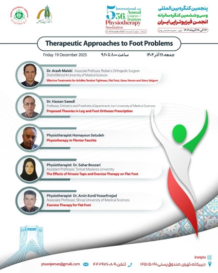 برگزاری کارگاه «رویکردهای درمانی مشکلات پا» در جریان پنجمین کنگره بین‌المللی و سی‌وششمین کنگره سالیانه انجمن فیزیوتراپی ایران برگزار می شود و متخصصان حاضر به بررسی تازه‌ترین روش‌های تشخیص و درمان اختلالات پا می پردازند.