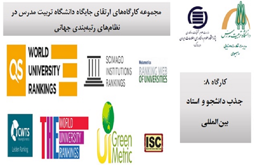 مدیریت نظارت و ارزیابی راهبردی دانشگاه با همکاری پژوهشگاه علوم و فناوری اطلاعات ایران (ایرانداک)، هشتمین کارگاه از مجموعه کارگاه‌های «ارتقای جایگاه دانشگاه تربیت مدرس در نظام‌های جهانی رتبه‌بندی» را با عنوان « جذب دانشجو و استاد بین­ المللی» روز یکشنبه ۲۸ اردیبهشت ماه جاری از ساعت ۱۴ تا ۱۶ به صورت برخط برگزار می­ کند.مدرس این کارگاه دکتر امید فیلی، رئیس دپارتمان بازاریابی و استخدام دانشگاه تیلبرگ هلند و مخاطبین کارگاه مذکور اعضای هیات رئیسه دانشکده­ ها، اعضای هیأت علمی دانشگاه و همکارن مدیریت روابط علمی بین ­المللی دانشگاه می باشند.لینک شرکت در کارگاه