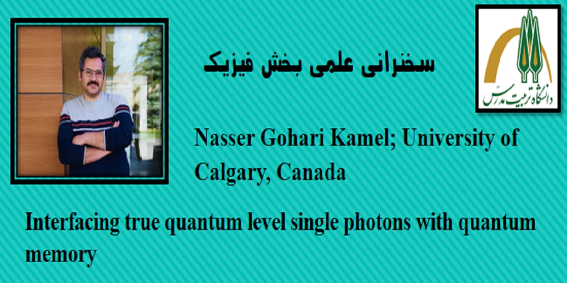 جلسه سخنرانی علمی بخش فیزیک با عنوان «نقش تک فوتون‌های کاملا کوانتومی در حافظه‌های کوانتومی» با سخنرانی ناصر گوهری کامل از دانشگاه کلگری کانادا دوشنبه ۲۸ فروردین ماه جاری از ساعت ۱۳:۳۰ در سالن همایش دانشکده علوم پایه واقع در طبقه منفی یک برگزار خواهد شد.