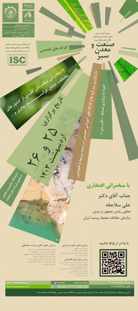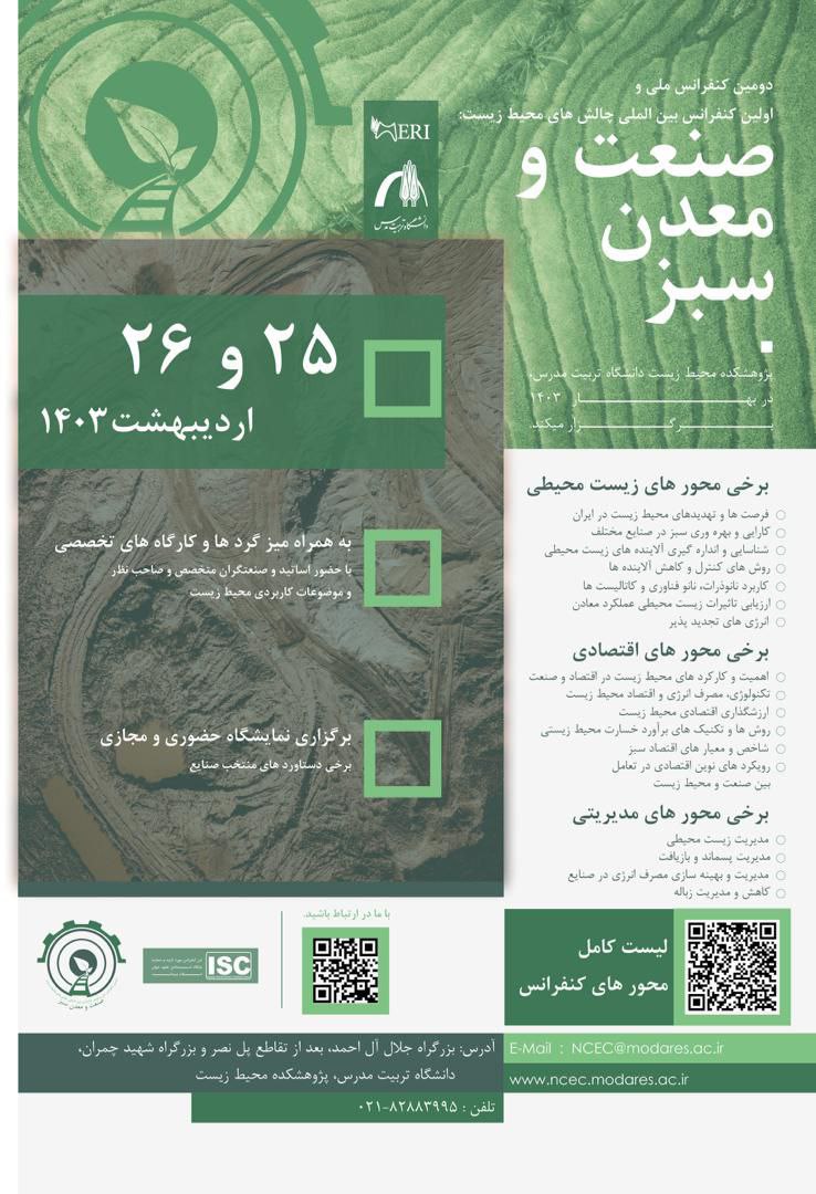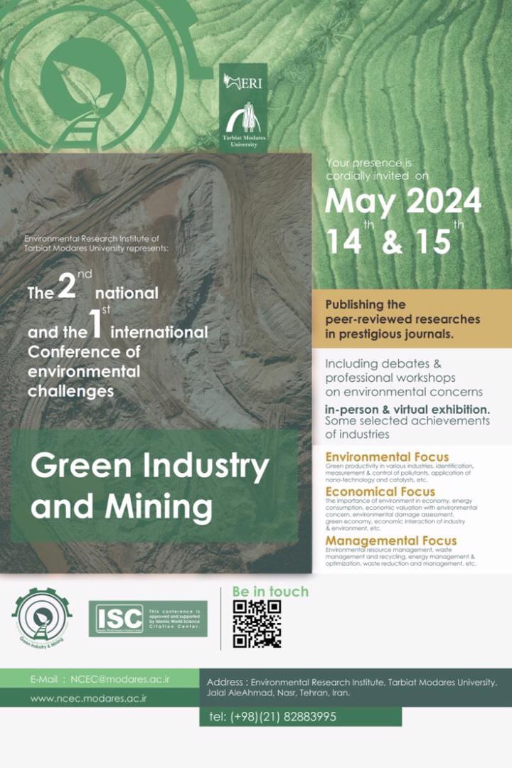 'دومین کنفرانس ملی و اولین کنفرانس بین المللی چالش های محیط زیست: صنعت و معدن سبز' 25 و 26 اردیبهشت ماه 1403 در دانشگاه تربیت مدرس برگزار می شود.