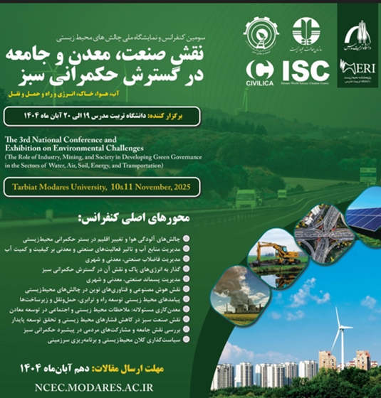 سومین کنفرانس و نمایشگاه ملی چالشهای محیط زیستی: نقش صنعت، معدن و جامعه در گسترش حکمرانی سبز با حضور معاون رئیس جمهور و رئیس سازمان حفاظت محیط زیست در روزهای ۱۹ و ۲۰ آبانماه ۱۴۰۴ در دانشگاه تربیت مدرس برگزار می شود.