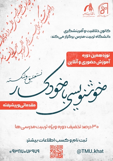 کانون فرهنگی خلاقیت و آفرینشگری دانشگاه تربیت مدرس دوره آموزش حضوری و آنلاین خوشنویسی نستعلیق و شکسته با خودکار (مقدماتی و پیشرفته) برگزار می‌کند.