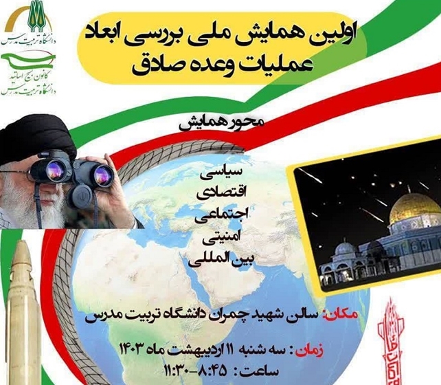 اولین همایش ملی بررسی ابعاد عملیات وعده صادق روز سه شنبه 11 اردیبهشت ماه در سالن اجتماعات شهِید چمران برگزار می شود.