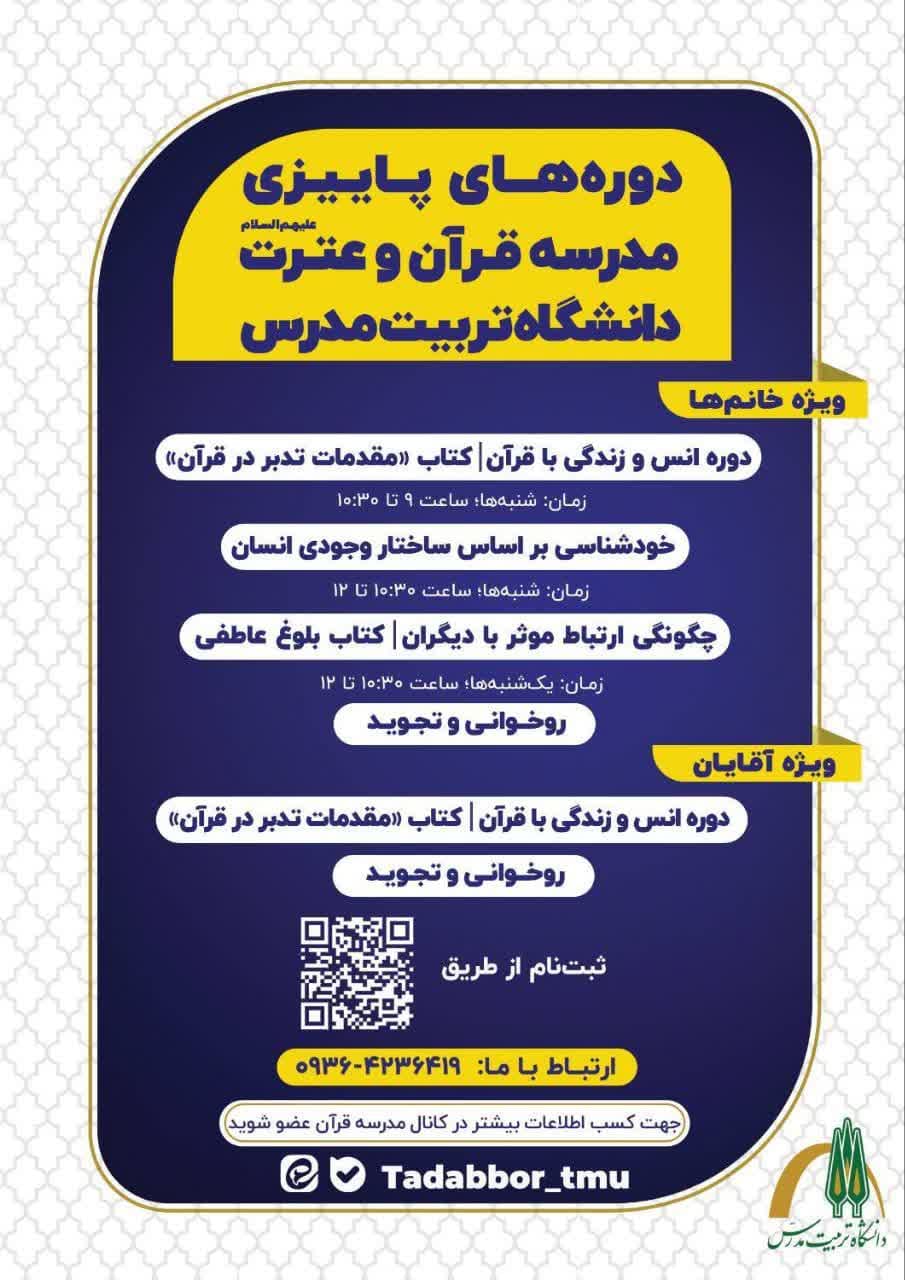 دوره‌های پاییزی مدرسه قرآن و عترت دانشگاه تربیت‌ مدرس برگزار می شود.