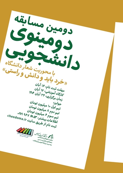 معاونت دانشجویی و فرهنگی_اجتماعی، مدیریت ورزشی و مدیریت روابط عمومی و ارتباطات دانشگاه تربیت مدرس با همکاری کمیته دومینو فدراسیون ورزش های همگانی، مسابقات دومینو دانشجویی با محوریت شعار دانشگاه "خرد باید و دانش و راستی" را برگزار می‌کند.