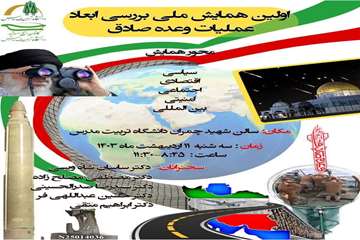 اولین همایش ملی بررسی ابعاد عملیات وعده صادق روز سه شنبه 11 اردیبهشت ماه در سالن اجتماعات شهِید چمران برگزار می شود.
