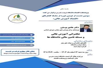 پژوهشکده اقتصاد دانشگاه تربیت مدرس سومین نشست از دومین دوره سلسله گفتارهای « اقتصاد آموزش عالی» را با عنوان « حکمرانی آموزش عالی و مسئله تأمین مالی دانشگاه ها» ۱۴ اسفند ماه جاری برگزار می‌کند. این نشست تخصصی با سخنرانی دکتر هادی یوسفی پژوهشگر مرکز پژوهش‌های مجلس شورای اسلامی حول محورهای: الگوهای حکمرانی و مؤلفه‌های مؤثر، رابطه دولت و دانشگاه و کارکرد هیأت امنا روز سه شنبه ۱۴ اسفند از ساعت ۱۲:۳۰ تا ۱۴ در سالن اجتماعات پژوهشکده اقتصاد دانشگاه تربیت مدرس برگزار می‌شود.