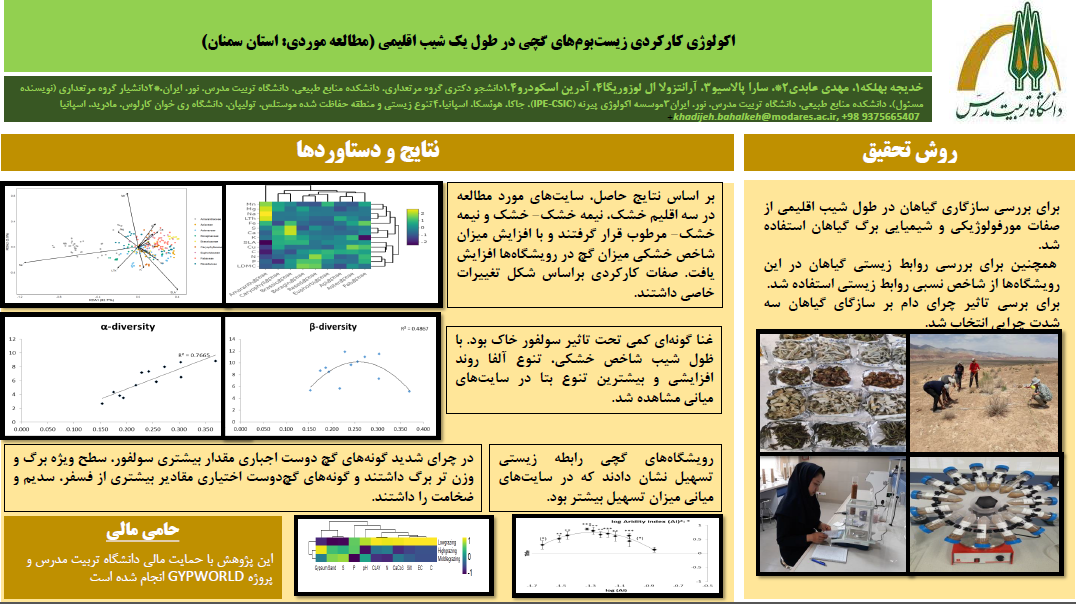 عنوان رساله: اکولوژی کارکردی زیست بوم های گچی در طول یک شیب اقلیمی