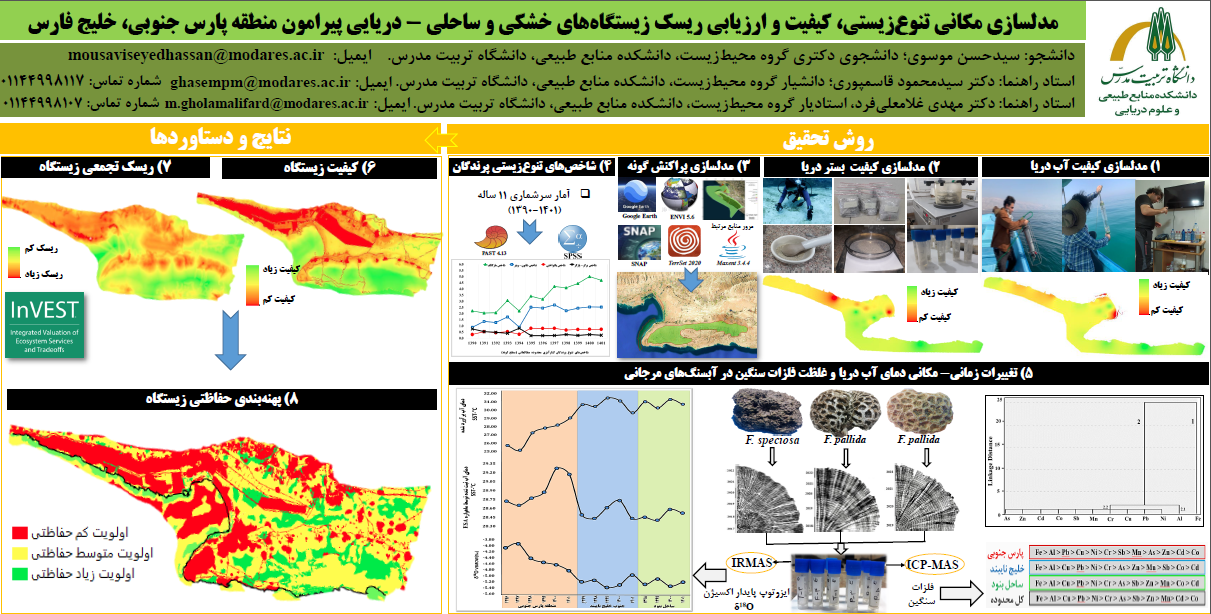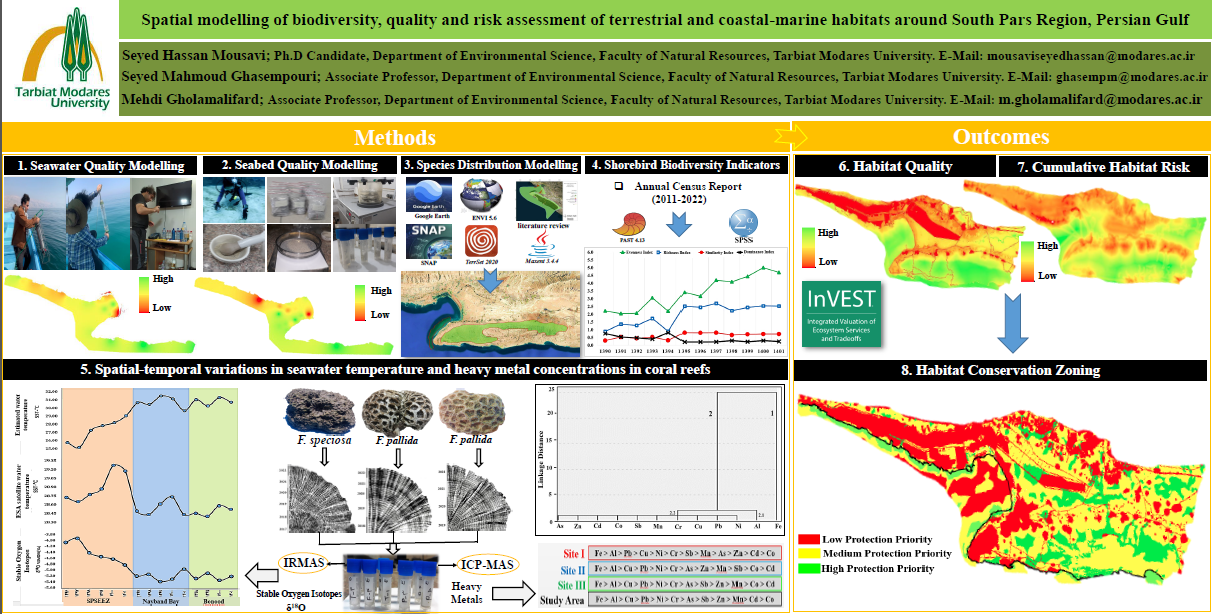 عنوان رساله: مدلسازی مکانی تنوع زیستی، کیفیت و ارزیابی ریسک زیستگاه های خشکی و ساحلی - دریایی پارس جنوبی، خلیج فارس