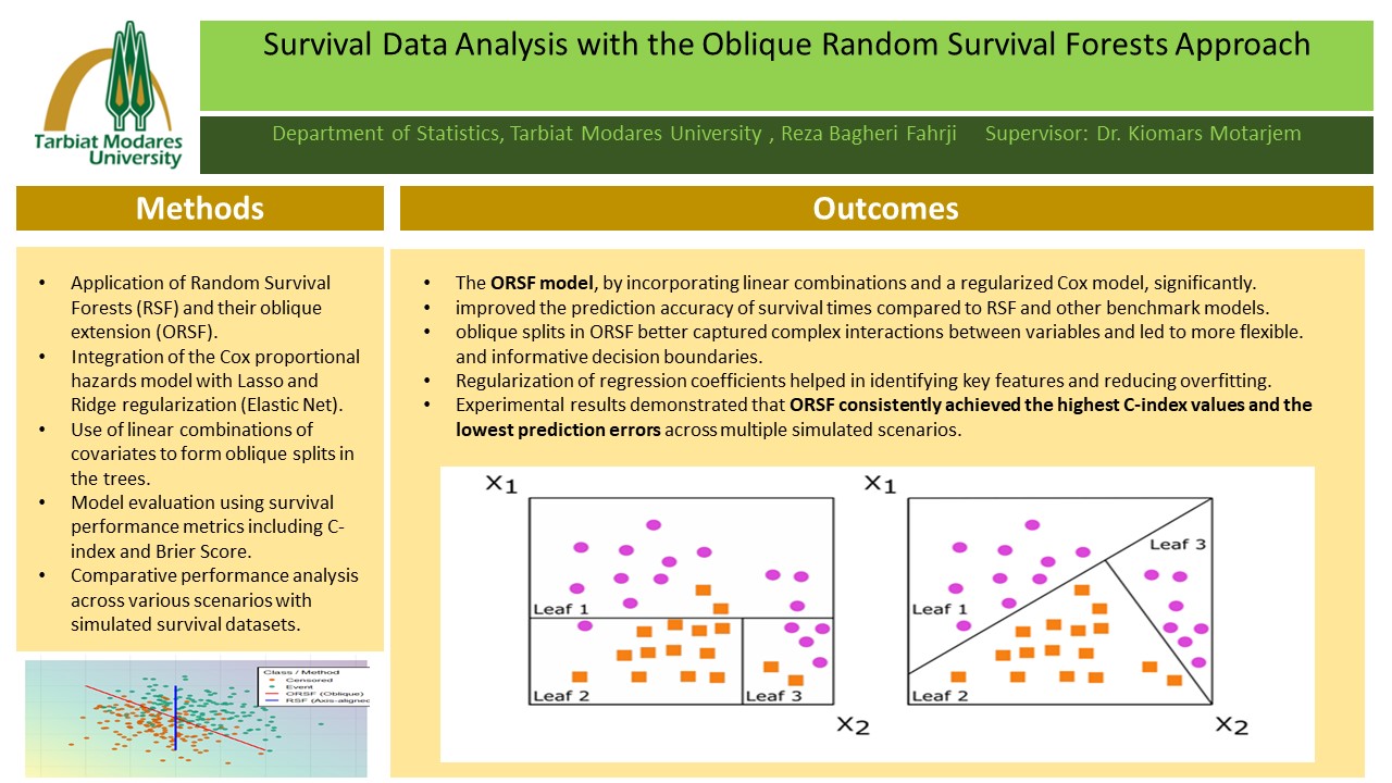 عنوان پایان نامه: تحلیل داده‌های بقا با رویکرد جنگل‌های بقای تصادفی مورب