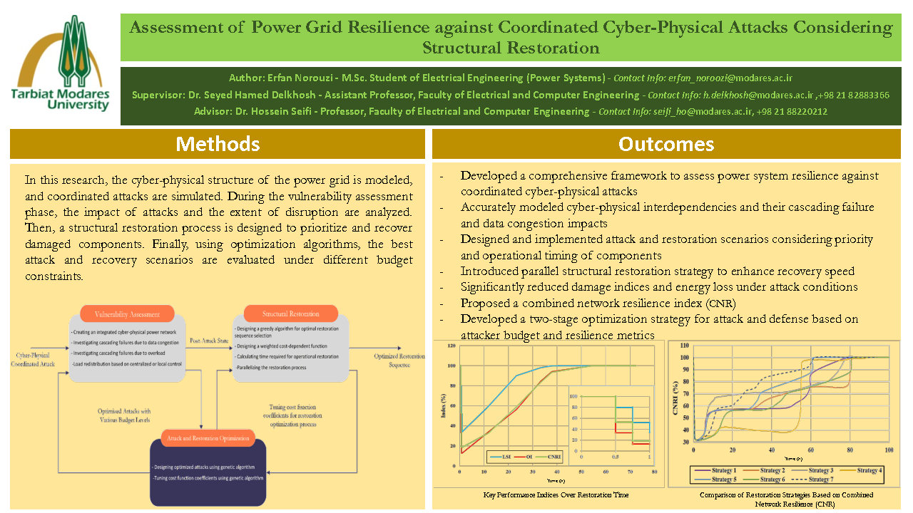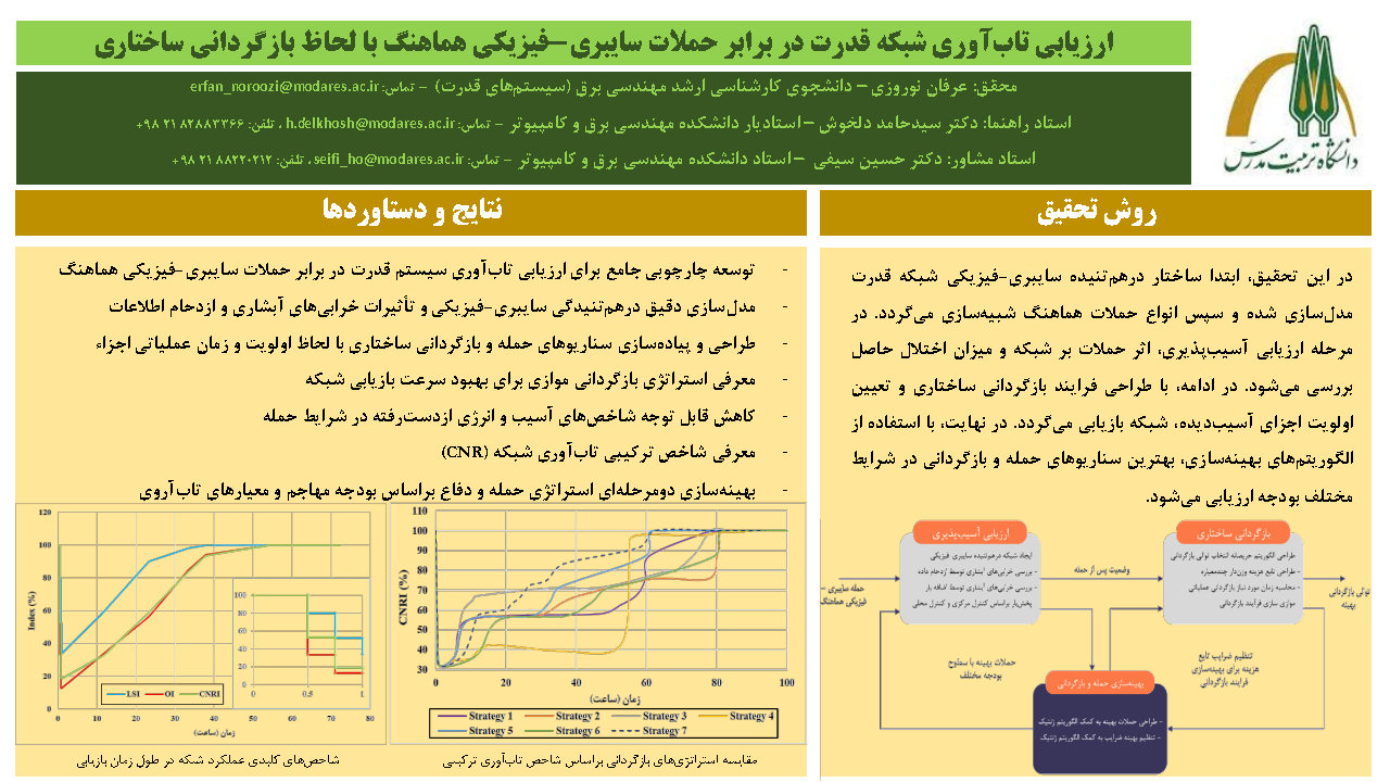 عنوان پایاننامه: ارزیابی تابآوری شبکه قدرت در برابر حملات سایبری-فیزیکی هماهنگ با لحاظ بازگردانی ساختاری