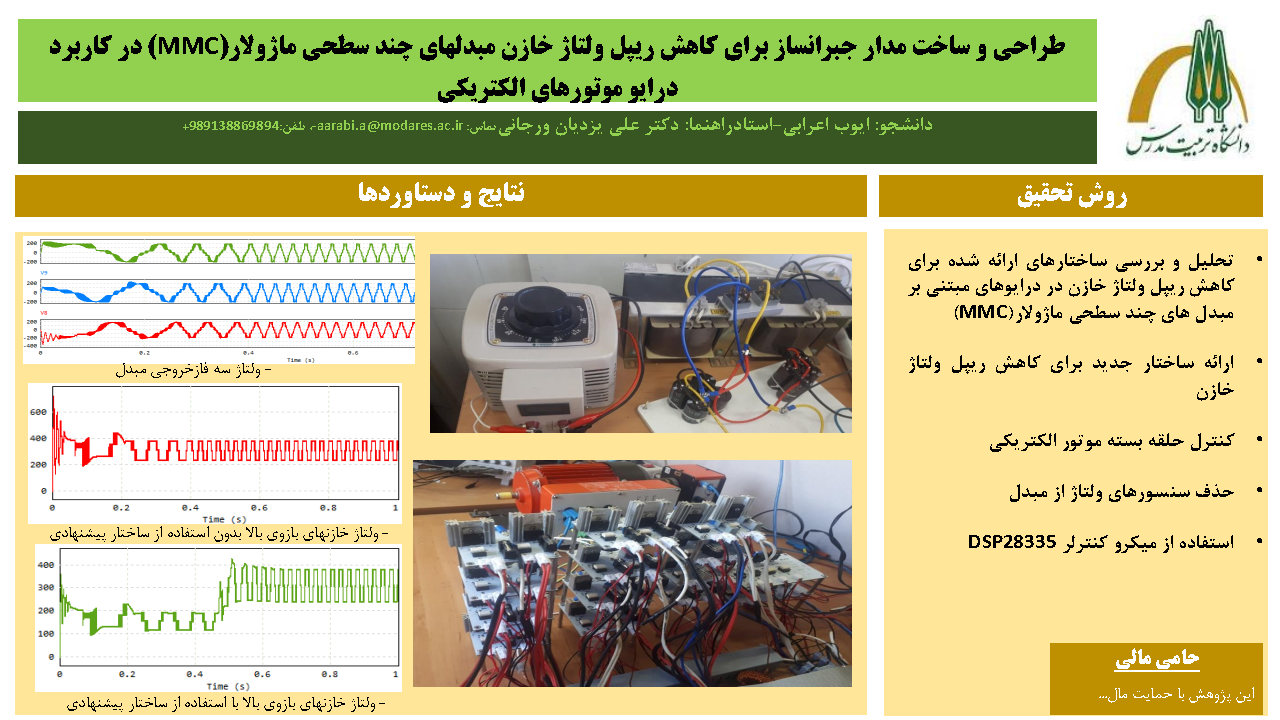 عنوان پایاننامه: طراحی و ساخت مدار جبران ساز برای کاهش ریپل ولتاژ خازن مبدل های چند سطحی ماژولار(MMC) در کاربرد درایو موتورهای الکتریکی