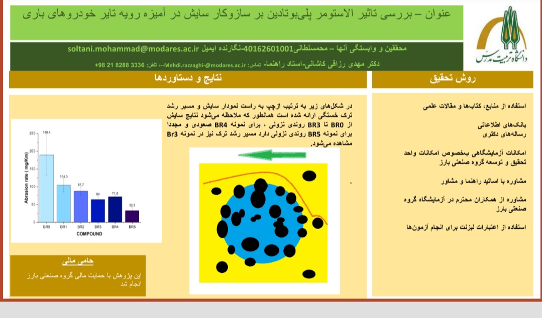 عنوان پایان نامه: بررسی تاثیر الاستومر پلی بوتادین بر سازوکار سایش در آمیزه رویه تایر خودروهای باری