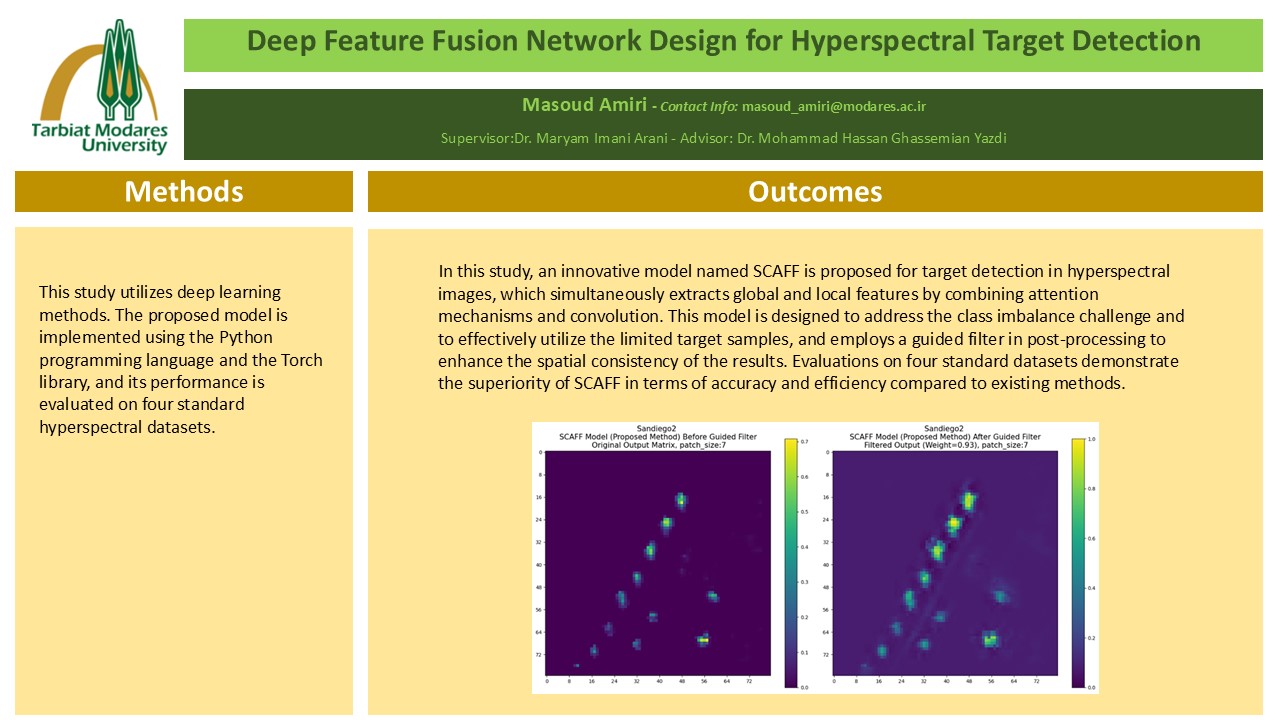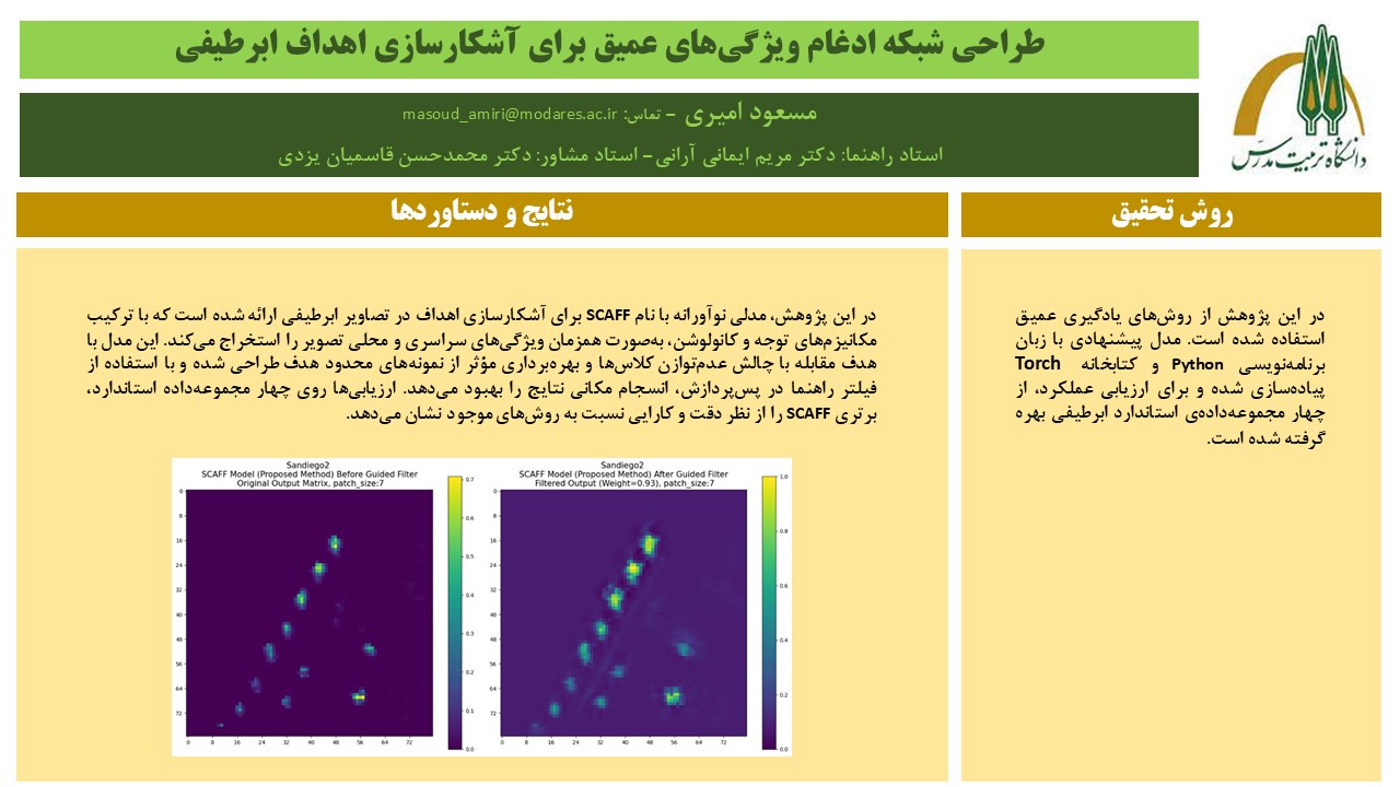 عنوان پایان نامه: طراحی شبکه ادغام ویژگی های عمیق برای آشکارسازی اهداف ابرطیفی