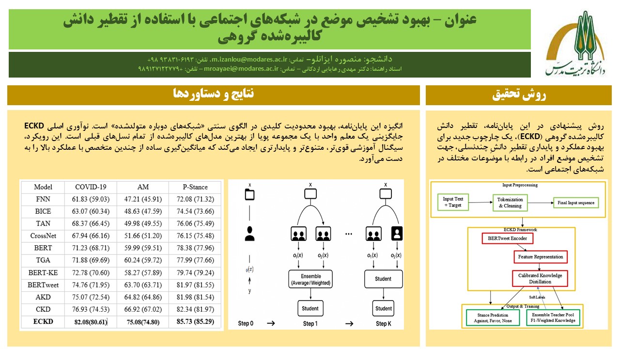 عنوان پایان نامه: بهبود تشخیص موضع در شبکههای اجتماعی با استفاده از تقطیر دانش کالیبرهشده گروهی