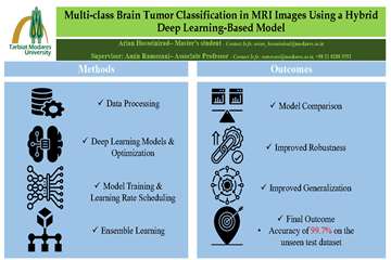 چکیده:در این پژوهش، با هدف بهبود تشخیص غده‌های مغزی بر اساس تصاویر MRI، یک رویکرد یادگیری عمیق ترکیبی پیشنهاد شده است. برخلاف بسیاری از روش‌های موجود که تنها به یک معماری خاص متکی‌اند و یا در مواجهه با مجموعه داده‌های نامتعادل و نویزی دچار افت کارایی می‌شوند، روش حاضر بر پایه‌ی ترکیب چندین معماری پیشرفته‌ی شبکه‌های عصبی پیچشی و بهینه‌سازی‌های چندمرحله‌ای شامل جستجوی شبکه‌ای، روش هایپربند و بهینه‌سازی بیزی طراحی گردیده است. برای افزایش دقت و تعمیم‌پذیری، مجموعه‌ای از پیش‌پردازش‌های هدفمند مانند برش تصاویر، تغییر ابعاد، افزایش کنتراست تطبیقی و نرمال‌سازی به‌کار گرفته شد. همچنین، بهره‌گیری از استراتژی‌های تنظیم نرخ یادگیری چرخه‌ای و تک‌چرخه‌ای موجب تسریع همگرایی و بهبود عملکرد گردید. علاوه بر این، با بهره‌گیری از روش‌های یادگیری تجمیعی (سخت، نرم و انباشته‌ای) با فرا یادگیرنده‌ی XGBoost محدودیت‌های معماری‌های منفرد کاهش یافت. نتایج آزمایش‌ها نشان می‌دهد که روش پیشنهادی در مقایسه با کارهای اخیر، صحت (دقت کلی) بالاتری در طبقه‌بندی انواع غده‌های مغزی به‌دست آورده است. نتایج شبیه‌سازی بر روی یک مجموعه داده‌ با چهار کلاس نشان می‌دهد که چهارچوب پیشنهادی به دقت کلی (صحت) %۹۹.۷ بر روی مجموعه داده‌ی آزمون رسیده است.