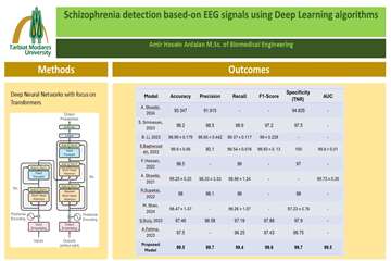 چکیده: اسکیزوفرنی یک اختلال روانی پیچیده و طولانی‌مدت است که با علائمی همچون هذیان، توهم، اختلال در گفتار، نارسایی‌های شناختی و تجربه ادراکات غیرواقعی همراه است و می‌تواند به ناتوانی مادام‌العمر منجر شود. این بیماری بر تفکر، رفتار و احساسات افراد تأثیرگذار بوده و به عنوان یکی از چالش‌های عمده سلامت روان شناخته می‌شود. تشخیص زودهنگام اسکیزوفرنی نقش مهمی در بهبود روند درمان و کیفیت زندگی بیماران ایفا می‌کند. با این حال، ماهیت پیچیده، متنوع و مبهم علائم این اختلال، فرآیند تشخیص را دشوار ساخته است. سیگنال‌های مغزی کم‌هزینه، غیرتهاجمی و با آنتروپی بالا هستند و بنابراین پتانسیل زیادی برای تشخیص بالینی بیماری‌های عصبی و کاربردهای رابط مغز و کامپیوتر دارد. بنابراین، تشخیص خودکار بیماری بر اساس سیگنال‌های مغزی مربوط به افراد سالم و بیماران اسکیزوفرنی می‌تواند به طور مؤثر به پزشکان در تشخیص دقیق کمک کند. در این پژوهش، رویکردی نوین مبتنی بر معماری ترنسفورمر برای تشخیص اسکیزوفرنی از سیگنال‌های مغزی ارائه می‌شود. فرآیند تحقیق شامل مراحل انتخاب داده، پیش‌پردازش، استخراج ویژگی و طبقه‌بندی است. برای شبیه‌سازی‌ها از مجموعه‌داده IBIB PAN-Department of Methods of Brain Imaging and Functional Research of Nervous System  استفاده شد. پیش‌پردازش داده‌ها شامل تحلیل مؤلفه‌های مستقل، فیلترگذاری، نرمال‌سازی و تقسیم سیگنال‌ها به پنجره‌های زمانی است. سپس معماری ترنسفورمر با استفاده از توابع فعال‌سازی مختلف برای استخراج ویژگی‌ها به کار گرفته می‌شود. برای ارزیابی عملکرد مدل پیشنهادی، از روش اعتبارسنجی متقابل K-Fold با 10 K= استفاده گردید. نتایج حاصل نشان داد که روش پیشنهادی قادر به دستیابی به حداکثر دقت 99.4، درستی 99.5، حساسیت 99.4، اختصاصیت 99.4 ، امتیازF1 99.5 و سطح زیر منحنی 0.994 دست یابد. ین نتایج بیانگر توان بالقوه روش پیشنهادی در بهبود فرآیند تشخیص بالینی اسکیزوفرنی و ارتقای کارایی سیستم‌های هوش مصنوعی در حوزه سلامت روان می‌باشد