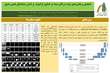 چکیده: بخش‌ بندی دقیق تصاویر فراصوت برای تشخیص ابتلا به سرطان سینه بسیار حیاتی می‌ باشد و فرصت‌ های مختلفی برای درمان این فراهم می‌ کند. با این حال، برچسب‌ گذاری دستی تصاویر فراصوت بسیار زمان‌ بر است و به اپراتور انسانی وابسته می‌ باشد. این مسئله چالش‌ های جدی را برای تشخیص ایجاد می‌ کند.   با توجه به این موضوع‌ ، سیستم‌ های تشخیص کامپیوتری توسعه پیدا کرده‌ اند که امکان کمک به اپراتور‌ ها در تشخیص و طبقه‌ بندی سرطان سینه را دارا هستند. به طور کلی این سیستم‌ ها دارای مراحل مختلفی هستند که در این میان، ‌ بخش‌ بندی تصویر که توده را از پس‌ زمینه جدا می‌ کند‌ ، مهم‌ ترین بخش محسوب می‌ شود و کلید پردازش‌ های بعدی است و کیفیت تجزیه و تحلیل نهایی را تعیین می‌ کند ما در این مطالعه‌ ، یک شبکه ‌ بخش‌ بندی نوین را ارائه کردیم. این ساختار دقت بخش‌ بندی را در تصاویر فراصوت بهبود می‌ بخشد. معماری نوآورانه و قدرتمند ما بلوک‌ های ConvMixer و Multi Head Self Attention را در انتهای بخش کدگذار شبکه U-Net به کار گرفته که به طور موثر اطلاعات سراسری را برای ‌ بخش‌ بندی دقیق در برمی‌ گیرد. همچنین شبکه ما با استفاده از بلوک‌ ConvMixer در بخش مسیر‌ های پرش، ویژگی‌ های نامربوط را سرکوب کرده و ویژگی‌ های ارزشمند را تقویت می‌ کند. در این ساختار از یک سری پیش پردازش‌ های نوین و قدرتمند برای بهبود عملکرد شبکه وجلوگیری از بیش برازش استفاده شده است. اعتبارسنجی ساختار ما روی مجموعه داده‌ های BUSI نشان می‌ دهد که شبکه ما در معیارهای ‌ بخش‌ بندی برتر از سایر شبکه‌ های پایه در این حوزه و شبکه‌های جدیدتر می‌ باشد. همچنین برابری دقت شبکه روی داده‌های ارزیابی و تست بیانگر عدم وجود بیش برازش وتاییدی بر علمی بودن نتایج ما می‌باشد. ساختار ما در بخش‌ بندی توده‌های خوش‌ خیم بسیار خوب عمل کرده و بهبود قابل توجهی در ‌ بخش‌ بندی توده‌ های بدخیم داشته است که به طور ذاتی چالش بیشتری دارند.