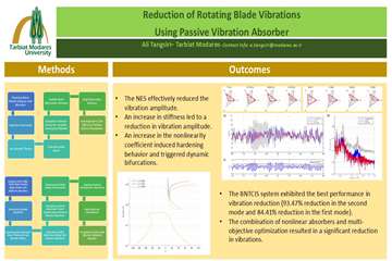 چکیده:این پایاننامه به بررسی روشهای کنترل ارتعاشات غیرفعال در سیستمهای دوار با استفاده از جاذبهای انرژی غیرخطی (NES) و سازوکارهای ترکیبی نوین میپردازد. در فصل سوم، دینامیک تیر دوار غیرخطی با اتصال NES تحلیل شد. با بهرهگیری از تئوری اویلر–برنولی و روشهای تحلیلی–عددی (میانگینگیری مختلط و رانگ–کوتا)، تأثیر پارامترهایی نظیر سختی، میرایی و غیرخطی بودن بر رفتار سیستم بررسی گردید. نتایج نشان داد افزایش سختی NES تا ۷۰% و ضریب غیرخطی η تا ۱٫۰ منجر به کاهش ۴۵% دامنه ارتعاشات و ظهور پدیده سختشوندگی میشود و شناسایی انشعابات گره زینی و هاپف، مکانیزمهای پایدارسازی دینامیکی را آشکار ساخت. در فصل چهارم، مدلسازی دینامیکی پره توربین بادی NREL 5-MW با ادغام دو جاذب غیرخطی NES و NTCIS انجام شد.با استفاده از روش رایلی–ریتز و بهینهسازی چندهدفه NSGA-II، کاهش همزمان ۷۴٫۹۳% پاسخ مود اول و ۹۳٫۴۷% مود دوم حاصل گردید. سیستم NTCIS به دلیل ترکیب مزایای کابل و اینرتر، با کاهش ۸۴٫۴۱% تغییرپذیری عملگر، برتری عملکردی نسبت به NES نشان داد و تحلیلهای میدان باد اغتشاشی و بارگذاری آیرودینامیکی مبتنی بر BEM، صحت مدل را در شرایط عملیاتی تأیید کرد. نتایج کلی حاکی از تأثیر چشمگیر جاذبهای غیرخطی در اتلاف انرژی ارتعاشی و بهبود پایداری دینامیکی است و پیشنهادات آتی بر توسعه مدلهای ترکیبی فعال–غیرفعال، بررسی اثرات محیطی و پیادهسازی عملیاتی سیستم BNTCIS متمرکز میباشد.