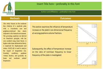 چکیده:استفاده از مواد ویسکوالاستیک در سازه‌ها برای کاهش ارتعاشات اضافی بسیار مفید هستند و این مواد از جذابیت موضوعی بالایی برای محققان، به‌خصوص در سال‌های گذشته برخوردار بوده‌اند. در این پژوهش تحلیل غیرخطی ارتعاشات آزاد ورق ساندویچی کامپوزیتی با هسته‌ی ویسکوالاستیک و رویه‌های تقویت‌شده با گرافن تحت بار حرارتی موردبررسی قرارگرفته شده است. ورق کامپوزیتی ساندویچی از سه لایه تشکیل‌شده است که در لایه‌ی میانی هسته‌ از نوع ویسکوالاستیک و دولایه‌ی بالایی و پایینی با صفحات گرافن تقویت‌شده‌اند .در این پژوهش هسته‌ی ویسکوالاستیک بر اساس تئوری زنر  و لایه‌های کامپوزیتی بر اساس تئوری هالپین-تسای  مدل‌سازی شده‌اند و جابجایی و کرنش‌ها بر اساس تئوری برشی مرتبه بالا ردی  و تئوری غیرخطی ون- کارمن  فرض شده‌اند. با استفاده از اصل همیلتون  معادلات حاکم استخراج و با به‌کارگیری روش ناویر  فرکانس طبیعی در تکیه‌گاه‌ ساده و با استفاده از روش مربعات تفاضلی  فرکانس طبیعی در تکیه‌گاه‌های مختلف به‌دست‌آمده‌اند و معادلات غیرخطی بر اساس روش اغتشاشاتی هموتوپی حل‌شده‌اند. در آخر پارامترهای مختلف همچون تأثیر افزایش دما، ، شرایط مرزی مختلف، کسر حجمی صفحات گرافن و ابعاد هندسی بر روی فرکانس‌های طبیعی خطی و غیرخطی مطالعه گردیده است.