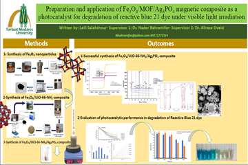 عنوان پایان نامه: تهیه و کاربرد کامپوزیت مغناطیسی Fe3O4/MOF/Ag3PO4 به عنوان فوتوکاتالیست برای تخریب رنگ ری اکتیو آبی 21 در محلول های آبی تحت تابش نور مرئی