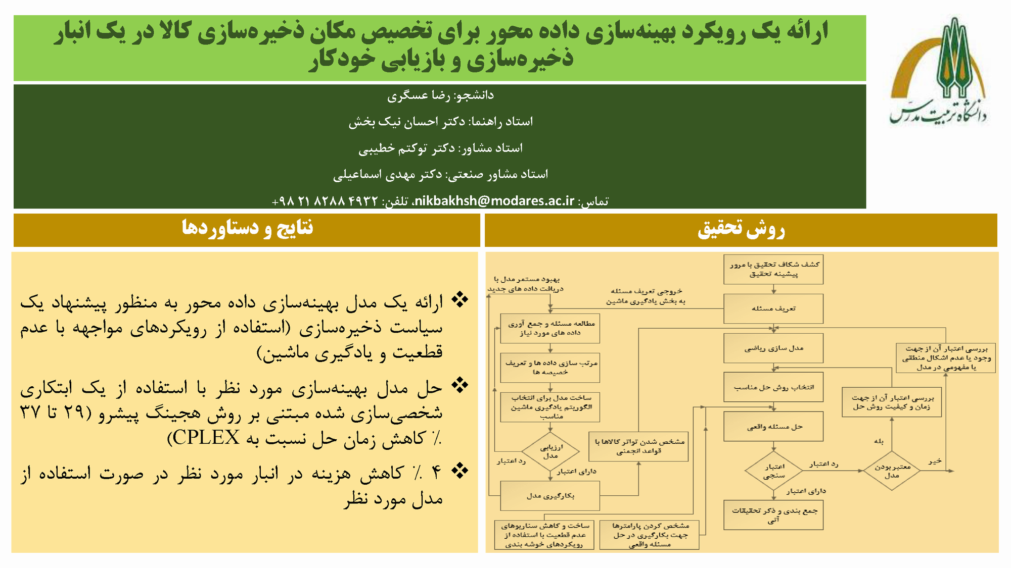 عنوان پایان نامه: ارائه یک رویکرد بهینه سازی داده محور برای تخصیص مکان ذخیره سازی کالا در یک انبار ذخیره سازی و بازیابی خودکار