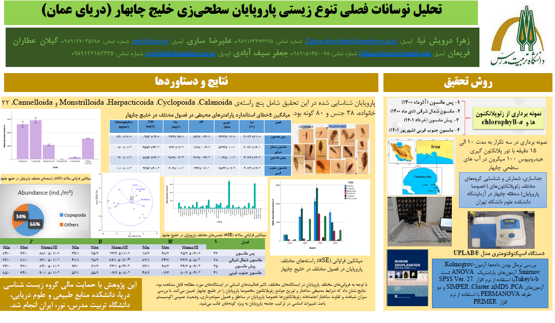 عنوان رساله: تحلیل نوسانات فصلی تنوع زیستی پاروپایان سطحیزی خلیج چابهار (دریای عمان)