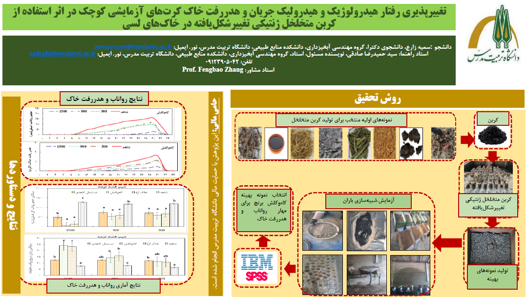 جلسه دفاع رساله سمیه زارع با عنوان «تغییرپذیری رفتار هیدرولوژیک و هیدرولیک جریان و هدررفت خاک کرت های آزمایشی کوچک در اثر استفاده از کربن متخلخل ژنتیکی تغییر شکل یافته در خاک های لسی» ۲۸ بهمن ۱۴۰۴ برگزار می شود.