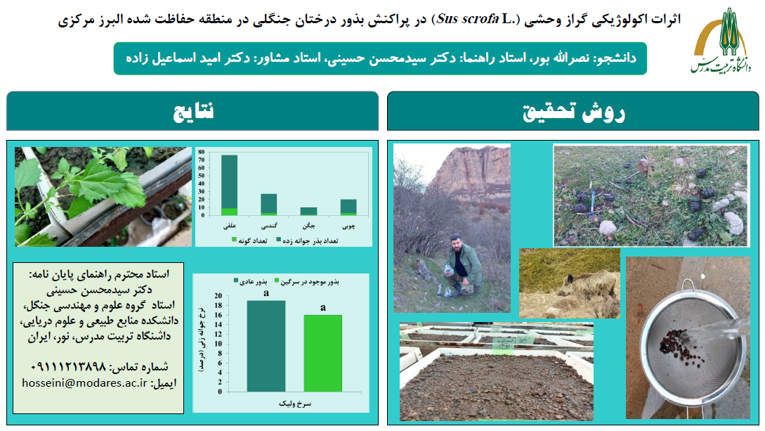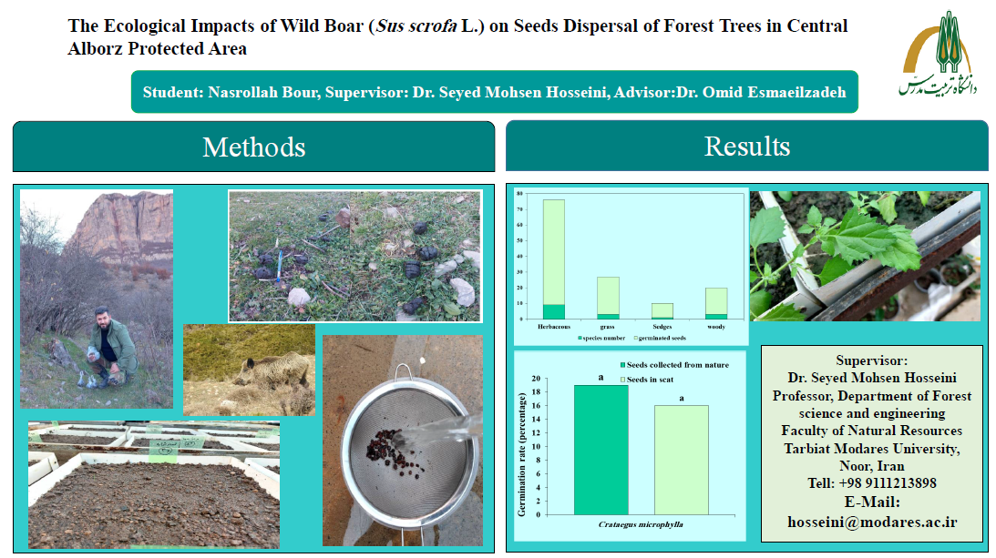 عنوان پایان نامه: اثرات اکولوژیکی گراز وحشی (Sus scrofa L.) در پراکنش بذور درختان جنگلی در منطقه حفاظت شده البرز مرکزی