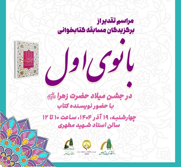به مناسبت ولادت حضرت زهرا(س)، مراسم تقدیر از برگزیدگان مسابقه کتابخوانی بانوی اول روز چهارشنبه ۱۹ آذر ماه برگزار می شود.